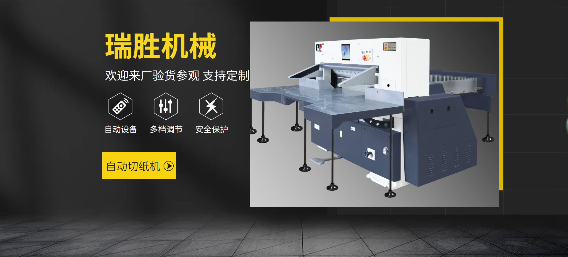 瑞安市瑞勝機械有限公司是一家專業(yè)集“生產(chǎn)、銷售、服務(wù)”于一體的印刷包裝機械企業(yè);有二十余年專業(yè)制造切紙機的經(jīng)驗,在切紙機行業(yè)中享有較高聲譽。研制出集光、機電、液為一體的高性能高品質(zhì)的切紙機系列產(chǎn)品,主要產(chǎn)品有電腦切紙機,雙液壓電腦切紙機,雙導(dǎo)軌數(shù)顯切紙機,快捷式壓痕機系列,覆膜機、上光機、燙金機等系列產(chǎn)品。